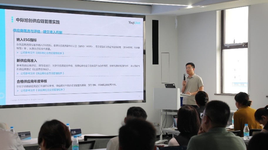 The program featured YoujiVest, a professional ESG consulting organization with a global perspective, which provided expert interpretation of the latest international ESG policies and best practices. In the opening session, a YoujiVest lecturer delivered an in-depth analysis of supply chain transformation under the wave of international ESG compliance, systematically explaining the critical impacts of new sustainability regulations on suppliers. The course emphasized that, with mandatory disclosure requirements being implemented worldwide, companies must establish end-to-end responsibility management systems covering raw material procurement, manufacturing, and logistics. Environmental management, labor rights protection, and business ethics must be deeply integrated into business operations. Through case studies, the lecturer also highlighted the risks of non-compliance, such as trade barriers and legal penalties, stressing that ESG capability has become a strategic necessity in global competition. Companies that take the lead in building ESG capacity can secure market access through compliance reviews, reshape brand value through sustainable practices, and ultimately seize high-value positions in the green supply chain landscape.