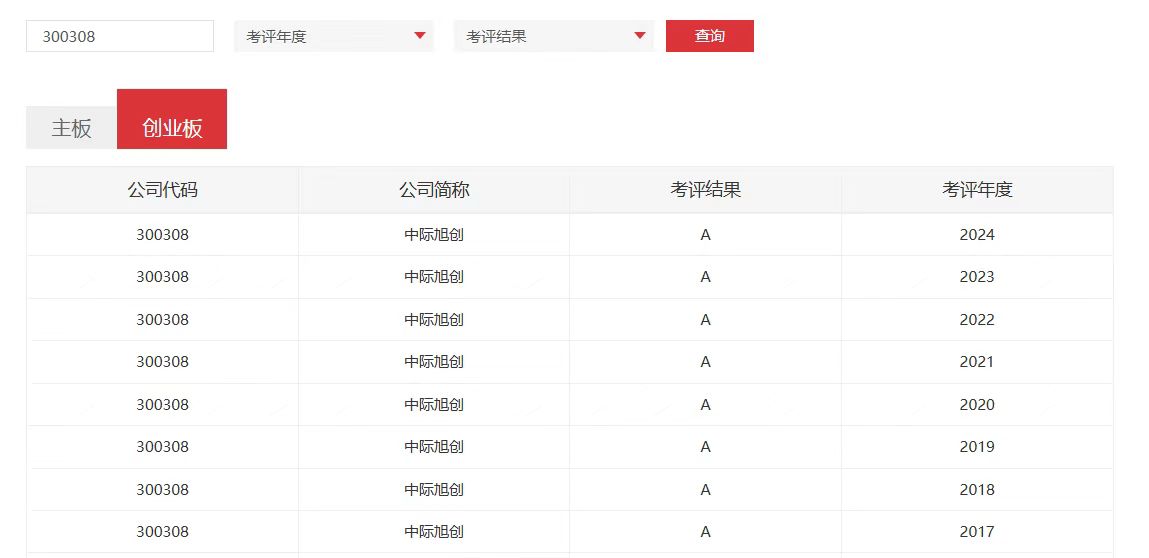 近日,深交所正式公布了主板、創(chuàng)業(yè)板上市公司2024-2025年度信息披露評(píng)價(jià)結(jié)果,中際旭創(chuàng)信息披露工作獲得了A級(jí)(優(yōu)秀)的評(píng)價(jià)結(jié)果,這是公司自2017年起,連續(xù)8年獲此殊榮。