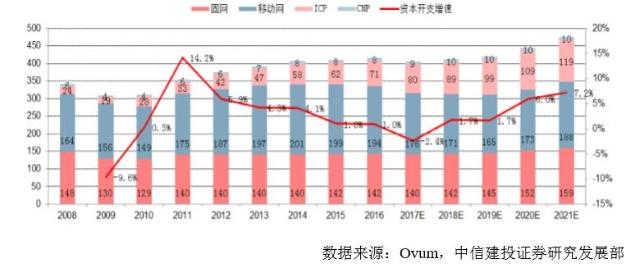 根據(jù)Ovum預(yù)測,2020年全球光模塊年銷售額有望超過122億美元,全球通信行業(yè)資本開支將從 2018 年起再次進(jìn)入增長通道。